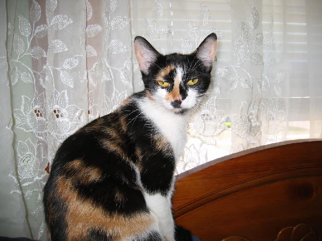 Gracie purched on our bed.
